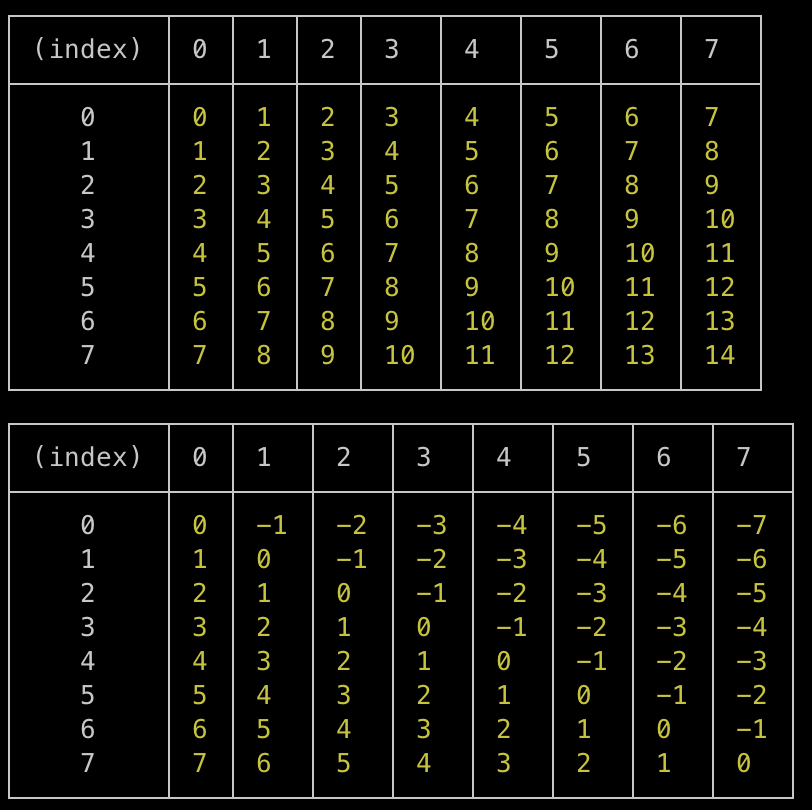 - negative diagonal = row number – column number
